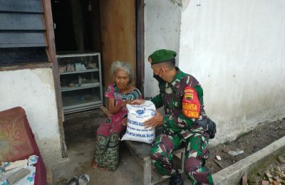 Personel Koramil 05/Sail Hadir Berikan Bantuan Pada Saat Masyarakat Dalam Kesulitan Akibat Dari Covid-19