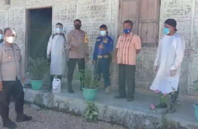 Cegah Penyebaran Virus Corona, Kapolsek Loura Pimpin Pelaksanaan Penyemprotan Disinfektan di Desa Langgalero