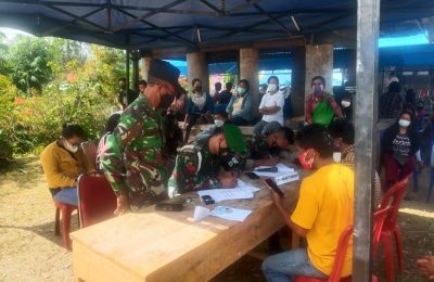 KODIM 1428/MAMASA MELAKSANAKAN KEGIATAN SERBUAN VAKSIN COVID-19 SECARA MASSAL DENGAN MENYASAR BEBERAPA DESA DI KABUPATEN MAMASA