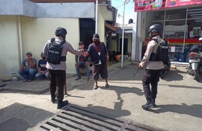 GM, Personel Kompi 4 Batalyon B Pelopor Sat Brimob Polda Jabar gencar melakukan sosialisasi prokes kepada masyarakat, ditengah melonjaknya kasus Covid-19 di...