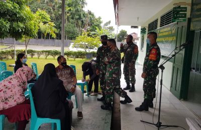 Pekanbaru -Babinsa Koramil 05/Sail Sertu Surono bersama anggota lainnya mendampingi petugas Fasilitas Kesehatan Batalyon Arhanud 13/Pby yang bertempat di jalan...