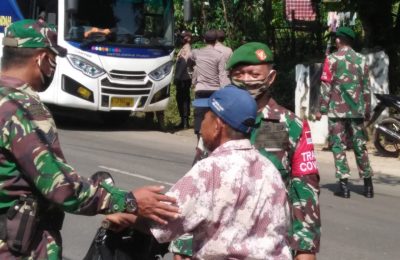 Babinsa Koramil 2108 Cariu – Tajungsari Gelar Razia PPKM Skala Mikro di Jalan Transyogi Jalur Bandung