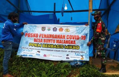 Babinsa Serda Ahmad Melaksanakan Pemasangan Baliho/Banner PPKM Berbasis Mikro Seluruh Desa Binaannya
