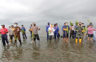 Sambut Hari Bhayangkara Ke-75, Polres Sinjai Tanam Pohon Bakau (Mangrove) Dipinggir Pantai