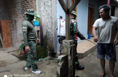 Upaya Cegah Penyebaran Covid-19, Sub Bojongmalaka Sektor 7 Satgas Citarum Lakukan Penyemprotan Disinfektan