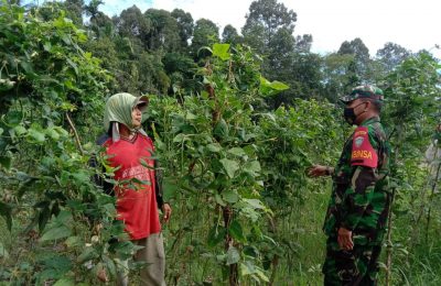 Petani Rawat Tanaman Kacang Panjang Yang Dibantu Babinsa Suka Rakyat Turun Ke Ladang