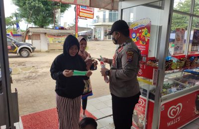 Polsek Angsana lakukan pendisiplin Prokes dengan cara membagikan masker gratis kepada masyarakat.