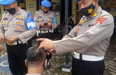 Tegakan Disiplin, Bidpropam Polda Banten Potong Rambut Personel Polsek Pulo Ampel Polres Cilegon