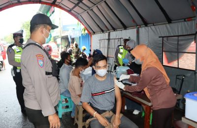 Sukseskan Program Vaksinasi Nasional, Team Vaksinasi Mobile Polres Lebak Terus Vaksinasi Keliling Pasar