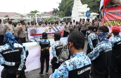 Kota Serang -Globalmediatama.com, Personel Polisi Wanita (Polwan) Polres Serang Kota Polda Banten layani aspirasi pengunjuk rasa dan membawa spanduk bertuliskan...