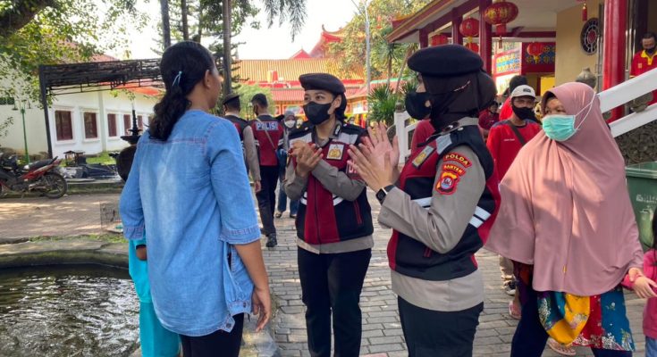 Polwan Subdit Gasum Ditsamapta Polda Banten melakukan Patroli Dialogis yang dilakukan dilokasi Vihara Avalokitesvara dan wilayah kecamatan Kasemen Kota Serang.